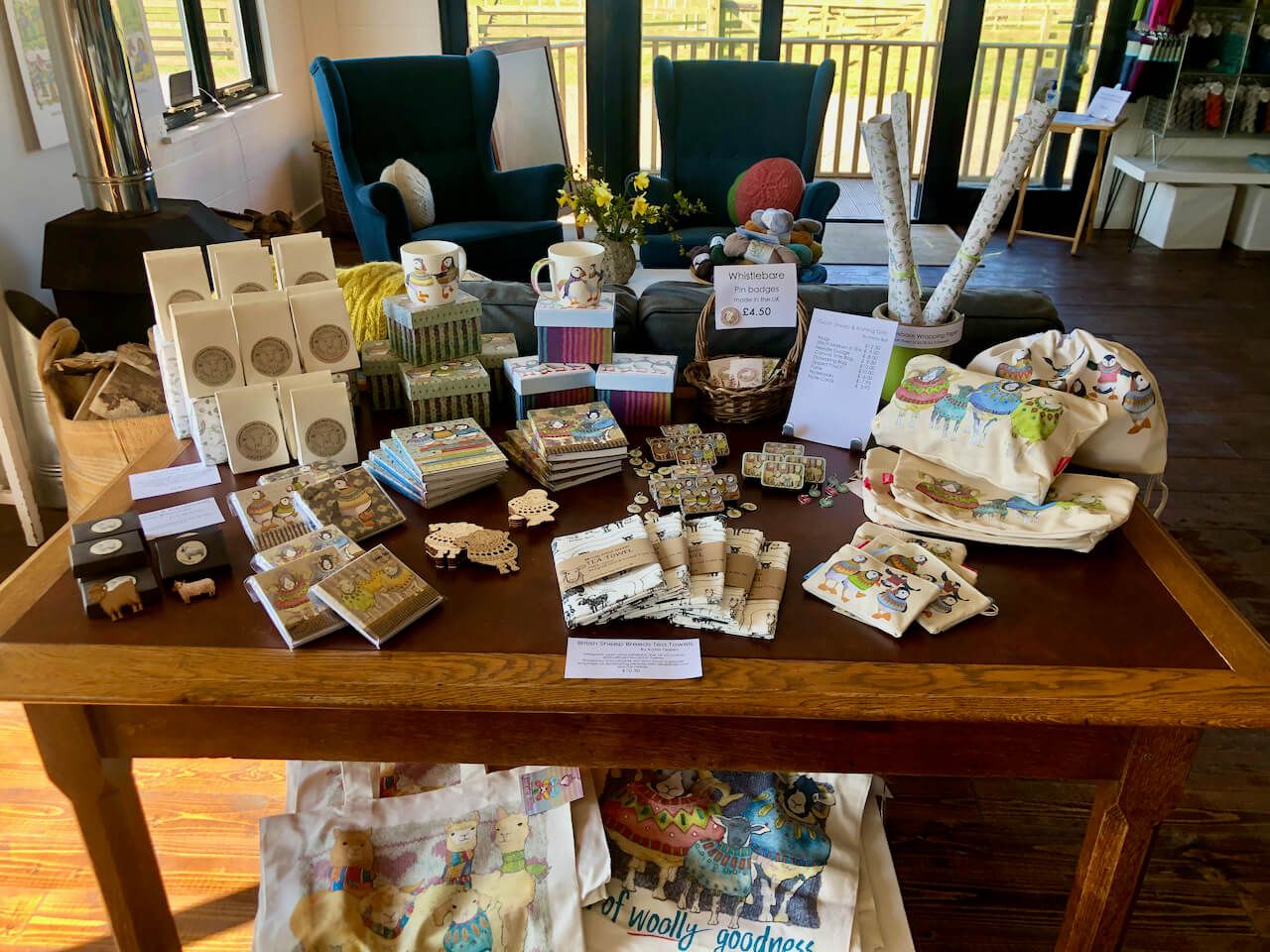 As well as yarns we have gifts from the farm too. We have a range for both knitters and nature lovers alike, from mugs to tea towels, bags to hats, scarves and blankets and socks.