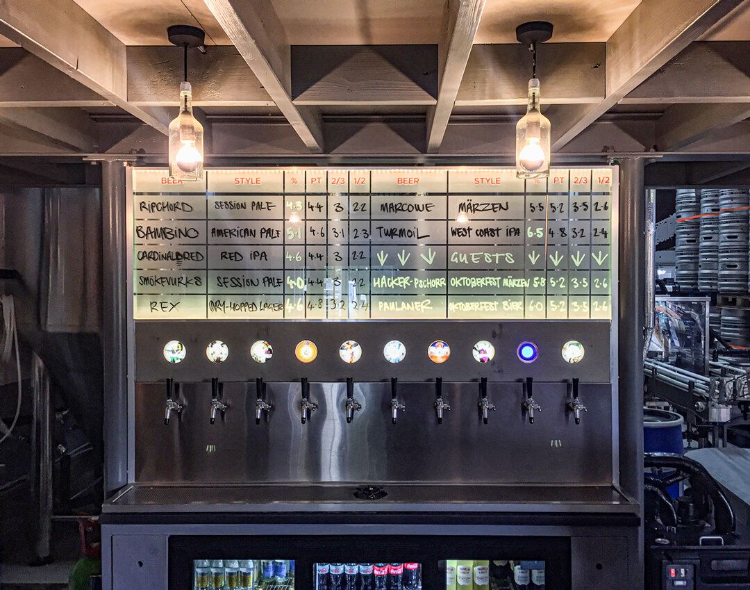 The taproom showcases an ever-changing selection of core beers and specials on tap, along with a full range of cans available to take away.
