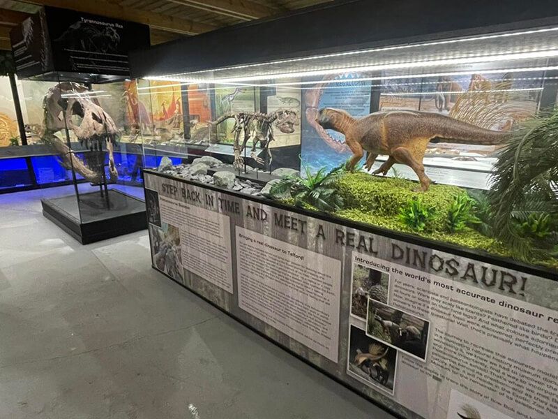 Visit our brand-new Natural History Museum at Exotic Zoo! Meet one of our real dinosaur skeletons, sure to engage visitors, young and old. The collection is brimming with surprises like a full-size T-rex Skull part real and part cast of real T-rex Stan! A sabre tooth tiger skull and a complete Ichthyosaurs as well as a fossil of an Elephant bird egg, the largest egg ever laid.